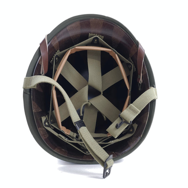 Introducing, our Norwegian-manufactured M1 helmet meticulously restored to replicate the appearance of an early WWII U.S. infantry helmet. Complete with a liner*, these helmets are tailored for the rugged reenactor who prefers not to subject an original WWII U.S. M1 helmet to weekend wear and tear. Additionally, they're an excellent choice for those on a budget or seeking a display piece where an authentic helmet is not a necessity.