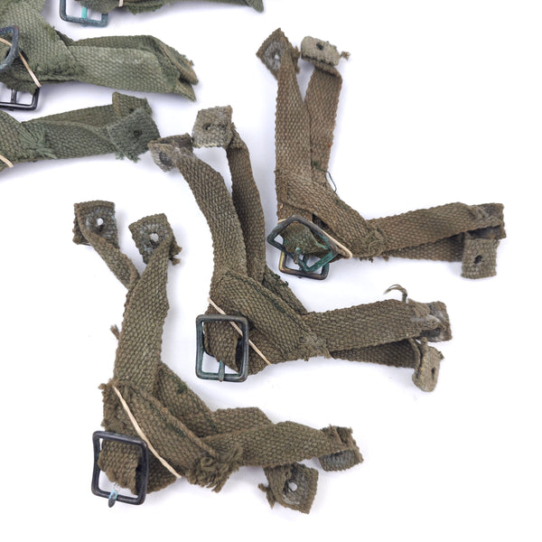 Original OD7 yoke pairs removed from FUBAR liners. Available in two hues: green-toned or brown-toned (3 pairs each). Used and cosmetically rough, but fully functional — perfect for building battle-tested paratrooper helmets. Sold by the pair. Choose your hue at checkout. If unavailable, it is sold out. Rivets and brass washers for installation are not shown but included.